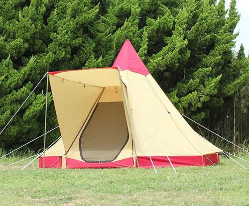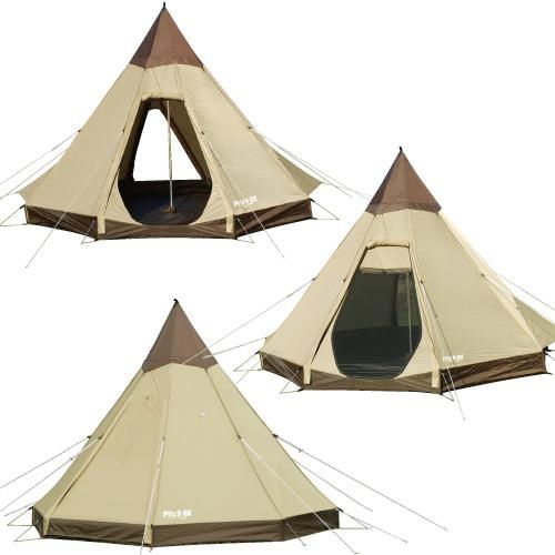 ベンチレーターは5ヵ所に装備 頂上部と下部両側面、そして出入口のメッシュパネルで室内換気を自在に調整できます。 カンタン設営 裾部8ヵ所を固定し、1本のポールを立てるだけで設営できます。女性でも設営可☆■素材