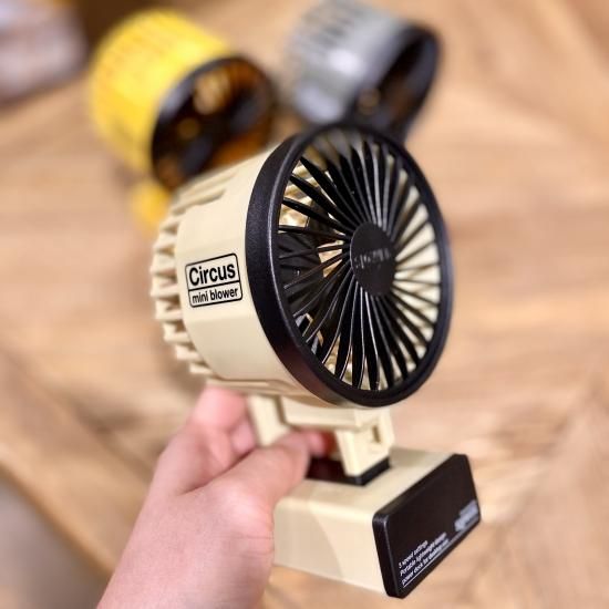 付属のバッテリーボックスをスタンドとして使えばデスクファンとしても使用可能。