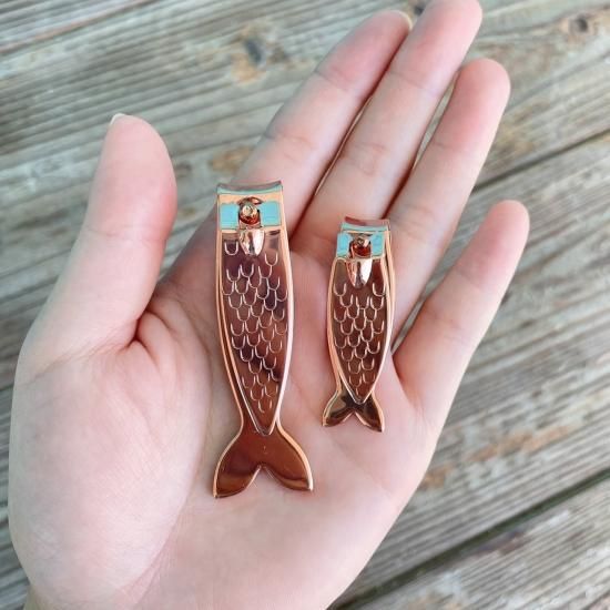 仕様のフィッシュモチーフネイルクリッパー。 大小2個セット。 大きなほうはお家用に、小さなほうは持ち運び用にぴったりです!