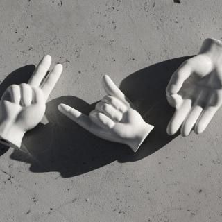 70年代によく見かけた木製ハンドオブジェを貫入入りの陶器にて製作。