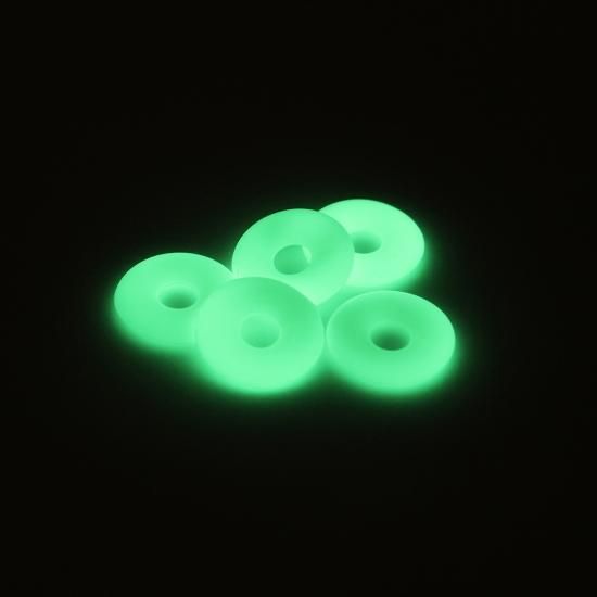 太陽光、スマートフォンのライト等様々な光源から蓄光することができるリングパーツ5個セット。キーリングやジップに付けることで暗い状況でも素早く認識することができます。
