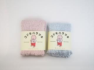 「コドモハラマキ」は先染めの糸をふんわり織り上げた、ソフトタッチなコットン素材です。