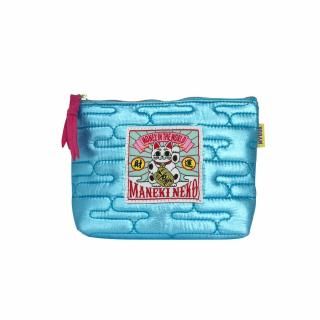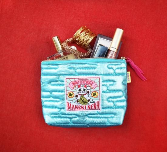 招き猫のイラストをジャガード織りのタグで仕上げ、中央にあしらわれています。